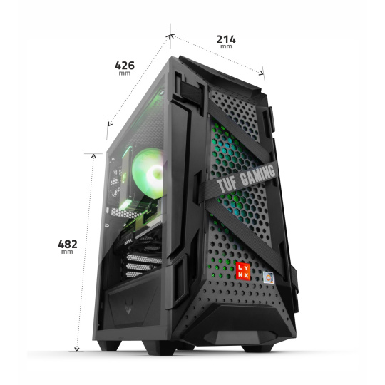 - Skříň: ASUS TUF GAMING GT301 – Moderní a dobře větraná skříň s dostatkem prostoru pro komponenty i budoucí upgrady.