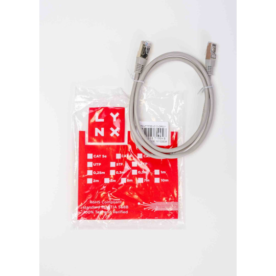 LYNX patch kabel Cat5E, FTP - 1m, šedý (prodej po 10 ks)