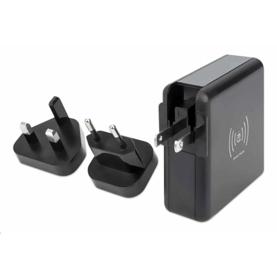 Manhattan cestovní nabíječka a powerbanka, 4-in-1, 8.000 mAh, Interchangeable US/EU/UK Plugs, černá