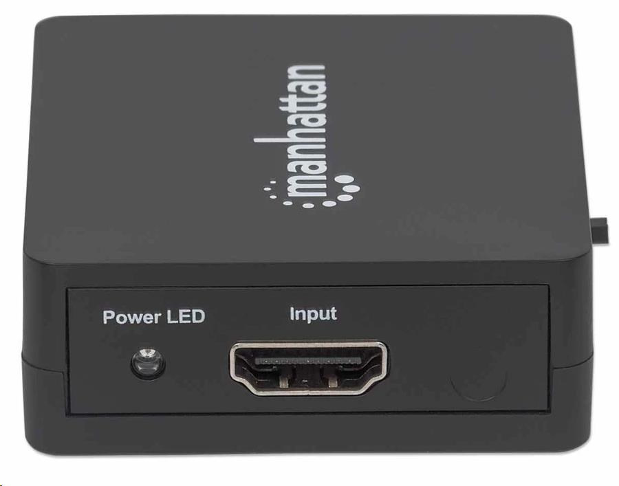 Easily distribute a single HDMI signal to multiple displays.The Manhattan 1080p 2-Port HDMI Splitter sends HDMI signals from a single Blu-ray player, satellite receiver, digital recorder, set-top box, game console or other HDMI source to two HDMI displays. Flexible Solution for Many A/V ApplicationsIdeal for trade shows, classrooms, video conferencing, presentations and retail applications, the Manhattan 1080p 2-Port HDMI Splitter features a built-in booster for added signal strength. It’s also a good choice for splitting and distributing a synchronous signal to multiple HDMI displays when source equipment is remotely stored in a secured room or cabinet. Users can cascade multiple units up to three levels and output HDMI video/audio to additional displays in widely distributed applications.Quality Construction and Easy InstallationFull compliance with HDMI, HDCP 1.0, 1.1 and 1.2 as well as DVI 1.0 ensures that the Manhattan 1080p 2-Port HDMI Splitter can provide long service and reliable performance. Quickly connect HDMI cables (not included) and the USB power cable, and this affordable HDMI solution is complete — no complicated settings or software or hardware configurations necessary.