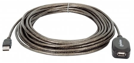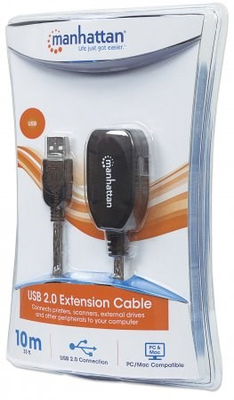 Use the Manhattan Hi-Speed USB Active Extension Cable to connect a computer USB port to a USB device almost anywhere in the room. Up to three daisy-chainable cable extensions provides a convenient, 30 m (99 ft.) connection. Manhattan Hi-Speed USB Active Extension Cable with built-in repeater is fully compliant with USB 1.1 and Hi-Speed USB specifications to help devices operate at maximum performance levels. Plug- and-play capability, Windows/Mac versatility and no external power or driver requirements help provide greater flexibility in computer and peripheral placement and office layout.
