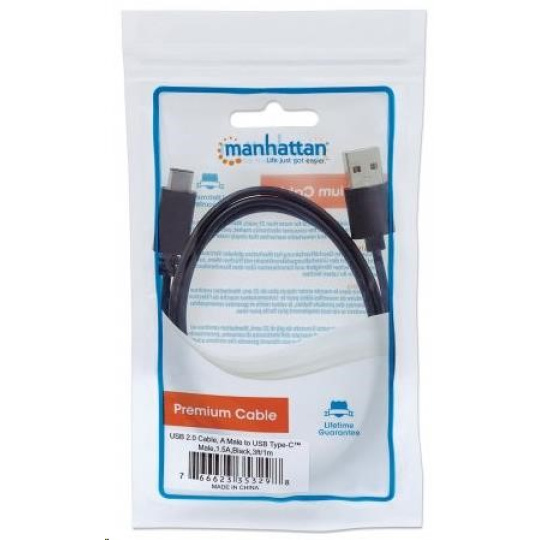 MANHATTAN Kabel USB 2.0 C, C Male / A Male, 1m, černý