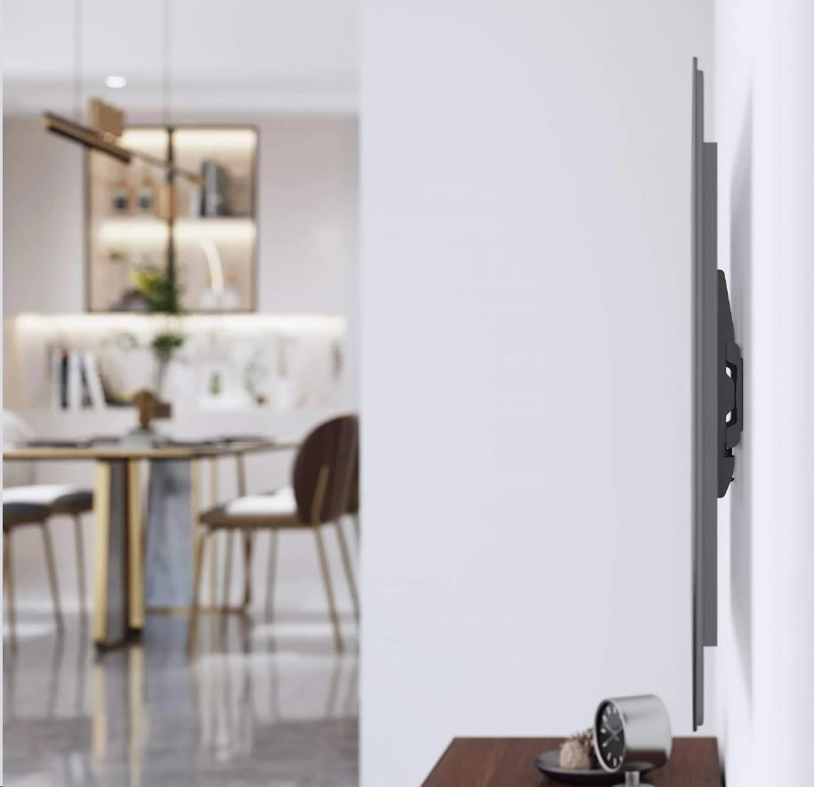 When viewing locations and TV heights are fixed at optimal positions, the Manhattan Low-Profile Fixed TV Wall Mount creates a nearly flush, close-to-the-wall installation that enhances the thin, modern TV silhouette. With this mount, your TV sits only 27 mm (1 in.) from the wall. Constructed of high-quality, powder-coated steel, it fits flat and curved LCD, LED or plasma TVs up to 43" and weighing up to 45 kg (100 lbs.). It offers VESA compliance up to 200x200, and it's great for residential, office, hospitality, classroom, conference room, digital signage and other commercial applications.
