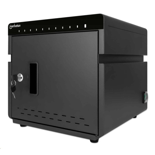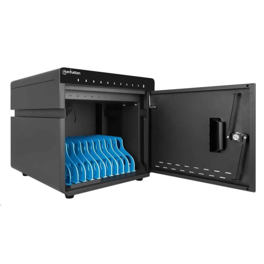 MANHATTAN stolní nabíjecí skříň - 10 portů, 180 W, přepěťová ochrana, tichá ventilace, kovové pouzdro, černá