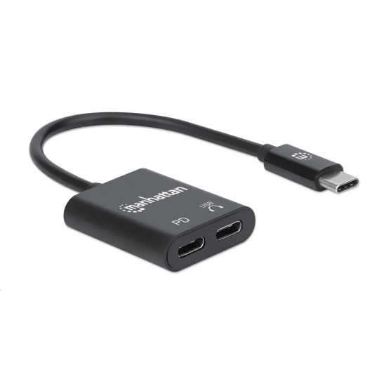 Want to listen to your USB-C headset and charging the device it connects to simultaneously? Add one USB-C audio port and get plenty of power for all your attached devices with the Manhattan USB-C Audio Adapter. Simply connect it to your computer's USB-C port, connect your computer's charging cable to the Power Delivery port on the adapter, and plug in your headphones. The adapter's Power Delivery technology charges your computer and all the devices it connects to so you can listen to music, favorite podcast or media program while you get work done. The jack also supports audio input if your headphone cable has a built-in mic so you can be heard and understood better in your online communications. Improve your productivity and get the audio connection you need with this USB-C audio adapter.