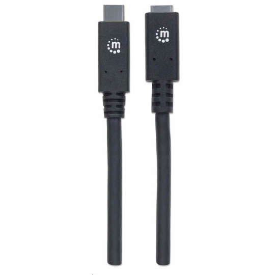 Manhattan USB-C kabel, USB 3.1 Gen 2, USB-C Male na USB-C Female, 10 Gbps, 5 A, 50cm, černá