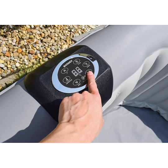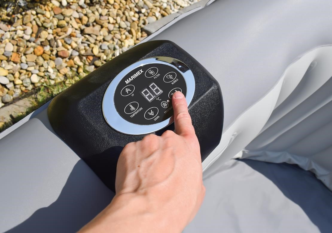 Ovládací panel vířivky je vyroben z měkkého, omyvatelného a ekologicky šetrného polyuretanu. Regulátor je chromovaný a splňuje standardy RoHS. Čerpadlo a filtrační systém jsou zabudovány do stěny vířivky, což šetří čas i místo při instalaci a skladování. Rychlost ohřevu: 1-2 °C/hod.