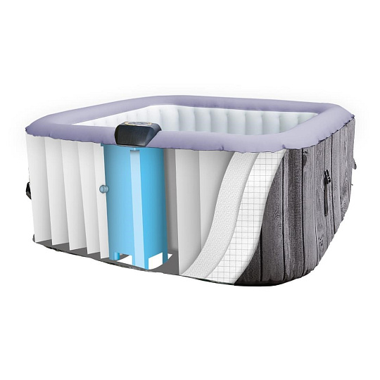 Laminovaná tkanina s termoizolační a UV ochrannou vrstvou zaručuje vynikající výkon vířivky. Je to dokonalá kombinace kvality, pevnosti a stability. Kartušový filtr pomáhá odstranit nečistoty, prach a další špínu. Balení obsahuje snímatelný potah, který zachycuje vlasy a drobná smítka.