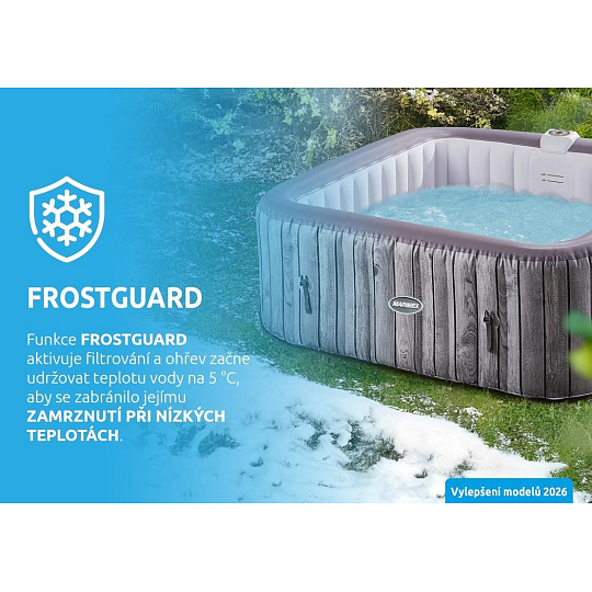 Vířivý bazén Aquamar P6002 disponuje funkcí Frostguard, díky které ohřev začne udržovat teplotu vody na 5 °C, aby se zabránilo jejímu zmrznutí při nízkých teplotách.