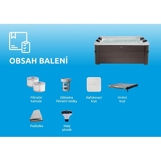 | Funkce vířivky | UV dezinfekce vody; Ovládání mobilní aplikací; Možnost provozu v zimě; Antibakteriální povrch |