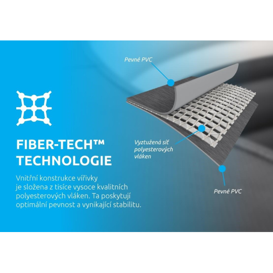 Vana je vyrobena z vysoce kvalitního 3 vrstvého PVC. Disponuje konstrukcí 48 FIBER-TECH BEAMS (silná polyesterová vlákna).