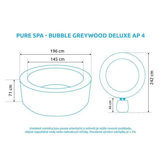 Vlastnosti mobilní vířivky Pure Spa - Bubble Greywood Deluxe