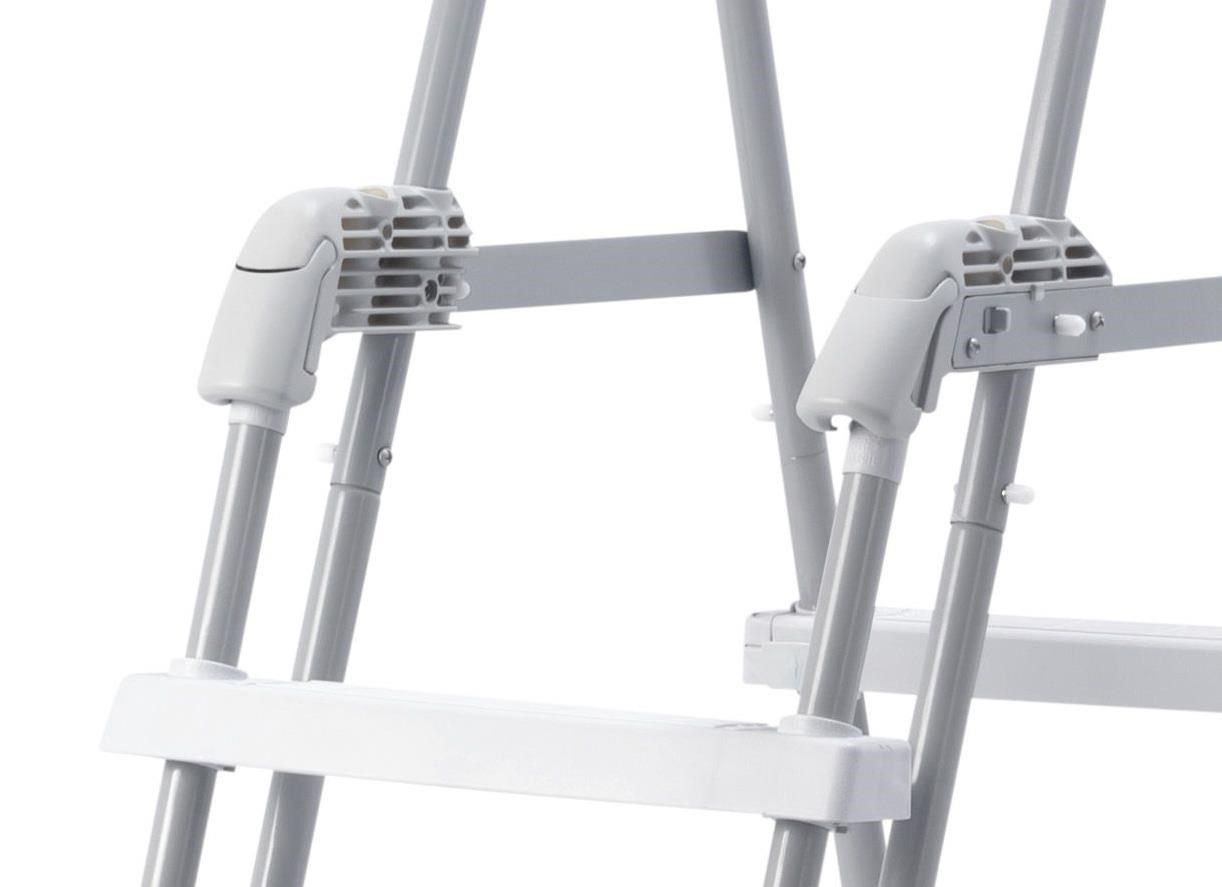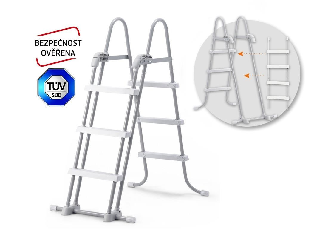 Schůdky mají odnímatelná stupátka - při jejich odnětí zamezíte nekontrolovatelnému vstupu dětí do bazénu. Maximální nosnost 136 kg.