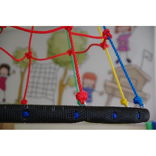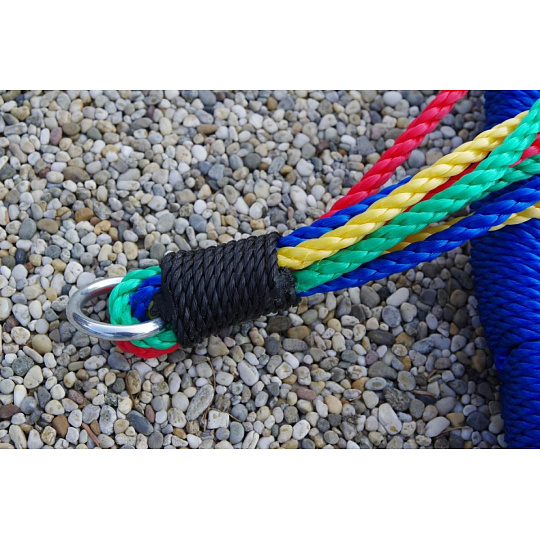 Závěsná houpačka ve tvaru kruhu je svým průměrem 100 cm a nosností až 150 kg ideální nejen pro děti, ale i dospělé. Velká sedací plocha houpačky nabízí volnost při houpání i dostatečný prostor pro lenošení. Houpačka je zavěšena na 4 délkově nastavitelných lanech, která jsou zakončena kovovými kroužky pro zavěšení na nosnou konstrukci..... více