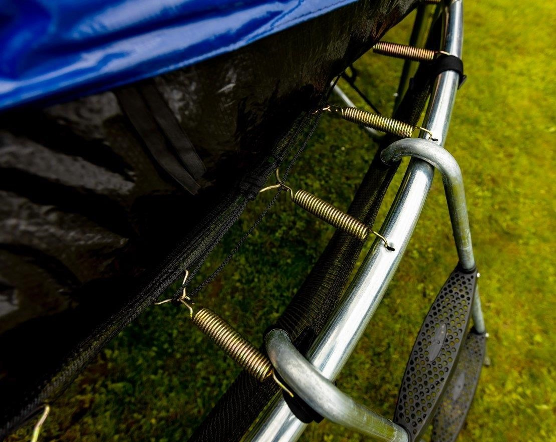 Vnitřní ochrannou síť najdete přímo v balení, nemusíte si ji dokupovat zvlášť. Vnitřní ochranná síť je bezpečnější než vnější síť - brání přístupu skákajícího do části s pružinami. Vstupní prostor je zajištěn třemi přezkami a brání vypadnutí. Tyče jsou obaleny ochranným návlekem z měkčené pěny. Nohy trampolíny jsou samostatné a zvyšují stabilitu celé trampolíny. Spojení tyčí nohou trampolíny a sítě je jištěno speciálními sponami.