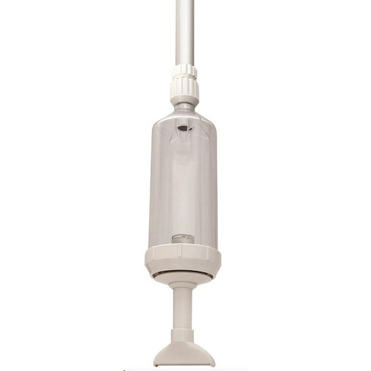 Pracuje na principu podtlaku, kdy prstem utěsníte otvor na konci teleskopické tyče, vložíte vysavač do vody na místo, kde jsou nečistoty. Poté uvolníte otvor a nečistoty ze dna budou vysáty do průhledného válce..