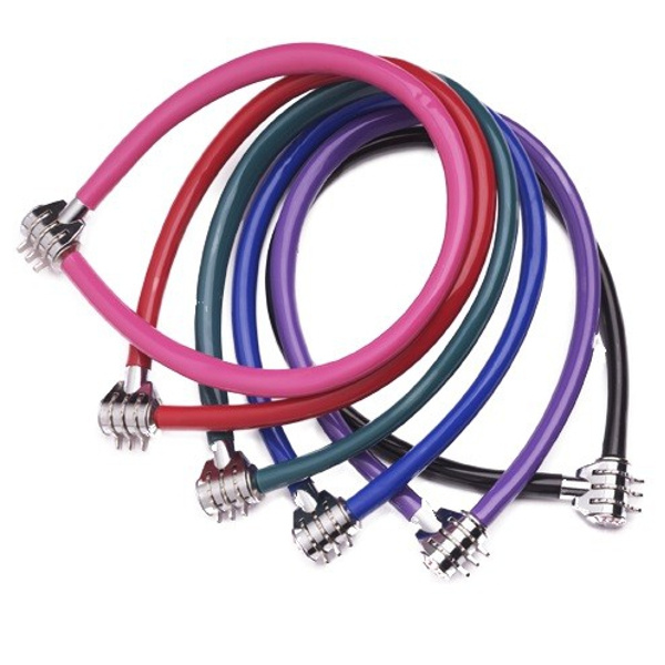 Ocelové kroucené kombinační lanko o délce 55cm a průměru 6mm má vinylový potah, který zabraňuje poškrábání. Obsahuje pevnou kombinaci 3 číslic.