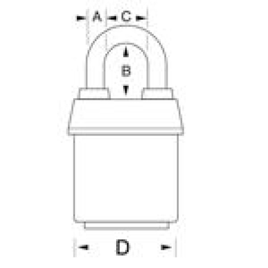 - Visací zámek o šířce 54 mm z vrstvené oceli.
