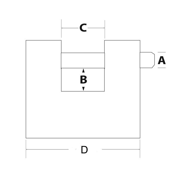 Obdélníkový visací zámek o šířce 90 mm a tloušťce 30 mm.