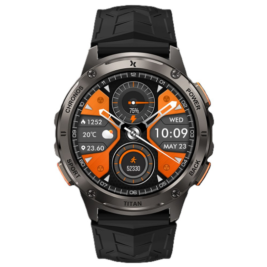 AMOLED displej se pyšní vysokým kontrastem, autentickou sytostí barev a energetickou účinností. 1,43palcový displej nabízí vynikající viditelnost a čitelnost bez ohledu na sluneční světlo díky jasu až 1000 nitů. Funkce Always On Display (AOD), která umožňuje neustálé zobrazení času při velmi nízké spotřebě energie, činí z hodinek Chronos ideální tradiční hodinky.