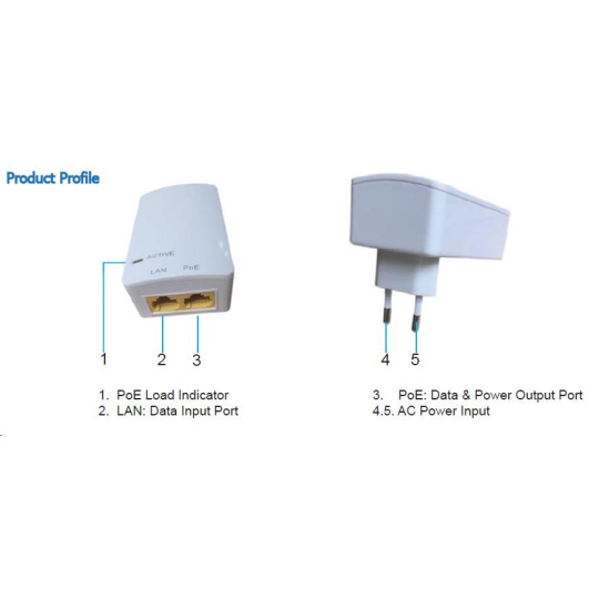 axLink PI15S je velmi kvalitní Gigabitový POE injektor s jedním výstupním POE portem pro napájení zařízení s podporou 802.3af a maximální spotřebou až 15,4W. PoE injektor se připojuje přímo do zásvuky. Napájení je vedeno po vodičích 4,5 (+) a 7,8 (-). Napájecí injektor je vhodný zejména pro napájení IP kamer, VoIP telefonů atp..