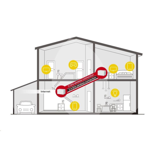 - Pokrytí celé domácnosti – pokrytí prostoru až 550 m2 (6 000 čtverečních stop) vysokorychlostní sítí Wi-Fi, která eliminuje mrtvé zóny Wi-Fi pokrytí ve vaší domácnosti.