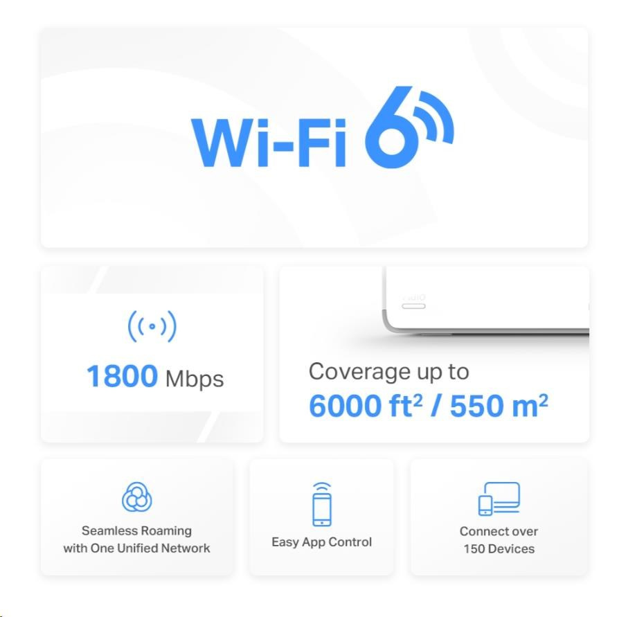 - Pokrytí celé domácnosti – pokrytí prostoru až 550 m2 (6 000 čtverečních stop) vysokorychlostní sítí Wi-Fi, která eliminuje mrtvé zóny Wi-Fi pokrytí ve vaší domácnosti.
