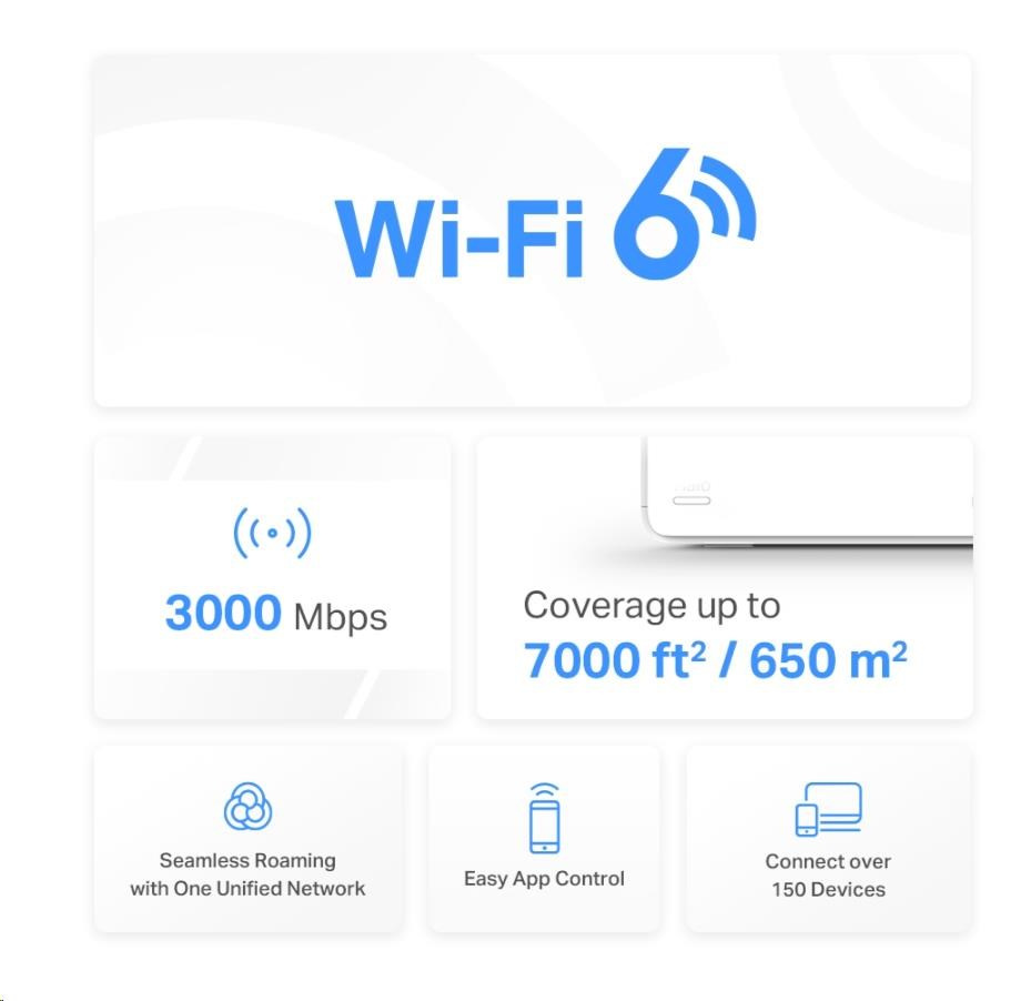 - Pokrytí celé domácnosti – pokrytí prostoru až 650 m2 vysokorychlostní sítí Wi-Fi, která eliminuje mrtvé zóny Wi-Fi pokrytí ve vaší domácnosti.