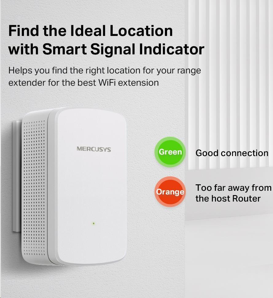 - Ukazatel signálu – barevný LED indikátor vám pomůže najít správné umístění extenderu signálu, aby bylo Wi-Fi pokrytí co nejlepší