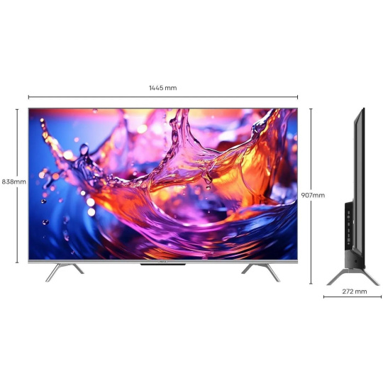Google TV, LED, 165cm, 4K Ultra HD, 50/60 Hz, HDR10, DVB-T2/S2/C, 3× HDMI, 2× USB, CI+, USB nahrávání, LAN, Bluetooth, Chromecast, Miracast, herní režim, hlasové ovládaní, Google Assistant, párování s mobilním zařízením, Oneplay, VESA 400×200, DTS Studio Sound, energetická třída F. Evropská distribuce..... více