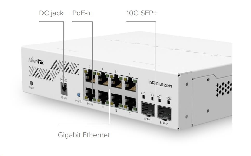 MikroTik Cloud Smart Switch CSS610-8G-2S+IN, 8 gigabit.portů, PoE-In, 2xSFP+, SwOS
