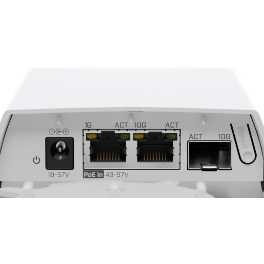 Popis produktu FTC11XG je 10Gbps opticko-metalický konvertor s implementovaným switch-chipem, SwOS Lite managementem (podpora VLAN, LAG, IGMP, SNMP, ACL, traffic shaping...) ve venkovním provedení s krytím IP55. Tento konvertor disponuje jedním Gigabitovým LAN portem s podporou PoE-IN napájení, jedním 10 Gbps LAN portem a jedním SFP+ slotem 10 Gbps pro vložení optických modulů. Konvertor lze napájet různýmui způsoby, podporovány jsou strandardy aktivního PoE (802.3af/at/bt), pasivní PoE (43 - 57V) a napájení pomocí DC konektoru s rozpětím napětí 18 až 57 V DC. Obsah balení • Zařízení • Napájecí adaptér 48V / 0.95A • Gigabitový PoE injektor • Držák na zeď • Šroubky, hmoždinky Technické parametry Optika Přenosová rychlost:10 Gbps Konektory a rozhraní Optické konektory:(1) SFP+ Rychlost LAN:(1) 100M/1G/10Gbps + (1) 10/100/1000Mbps Gigabit LAN:Ano Optické rozhraní:(1) 10Gbps Napájení Napájení přes PoE:43 .. 57V DC, 802.3af, 802.3at, 802.3bt Typ napájení:PoE, DC konektor Typy PoE:PoE-In (pouze) Max. spotřeba energie [W]:10 Napájení přes konektor/svorkovnici:18 .. 57V DC Fyzické charakteristiky Stupeň krytí:IP55 Provedení:Venkovní, Na zeď, Na stožár, Stropní Šasi:Plastové Tlačítka:Reset Provozní teplota [°C]:-40 až 70 Šířka [mm]:97 Výška [mm]:0,5 Hloubka [mm]:35 Software Management:Webové rozhraní Funkce:VLAN Operační systém:SwOS Výchozí IP adresa:192.168.88.1 Výchozí jméno a heslo:admin / -