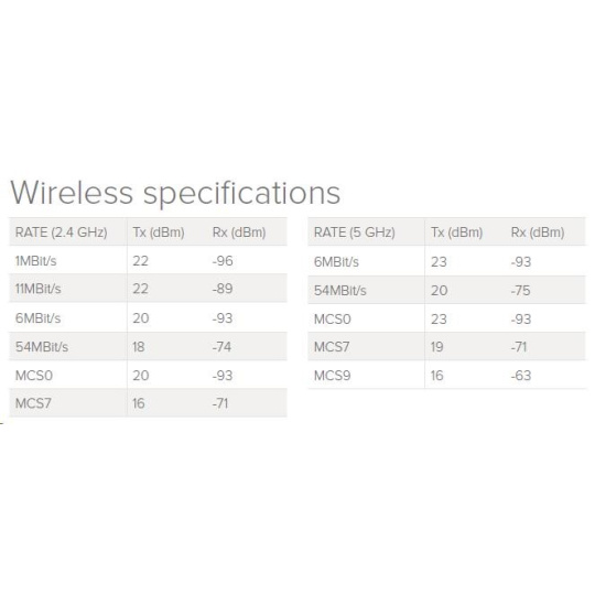 hAP ac lite je nový kompaktní router podporující standard 802.11ac. Je integrována jak 2.4GHz tak 5GHz Wi-Fi. (2.4GHz využívá 802.11b/g/b, dual chain 1.5dBi anténa, 300Mbps / 5GHz jede na 802.11ac a nechybí ani zpětná kompatibilita s 802.11a/n., single chain - 2dBi anténa, 433Mbps). Tato duální wifi tak dosahuje celkových přenosových rychlostí až 733Mbps. Procesor je taktován na 650MHz a sekunduje mu 64MB RAM operační paměti typu DDR. K dispozici je celkem pět ethernetových portů 100Mbps s podporou PoE in(port1) taktéž out (port5).