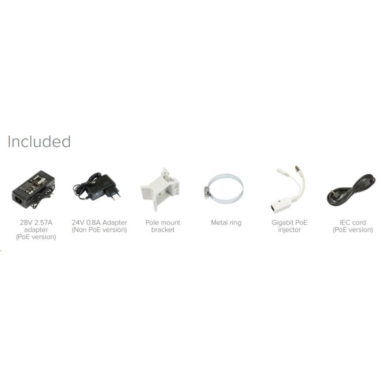Balení obsahuje: OmniTIK PG-5HacD, PoE injektor, napájecí zdroj, montážní sada na stožár