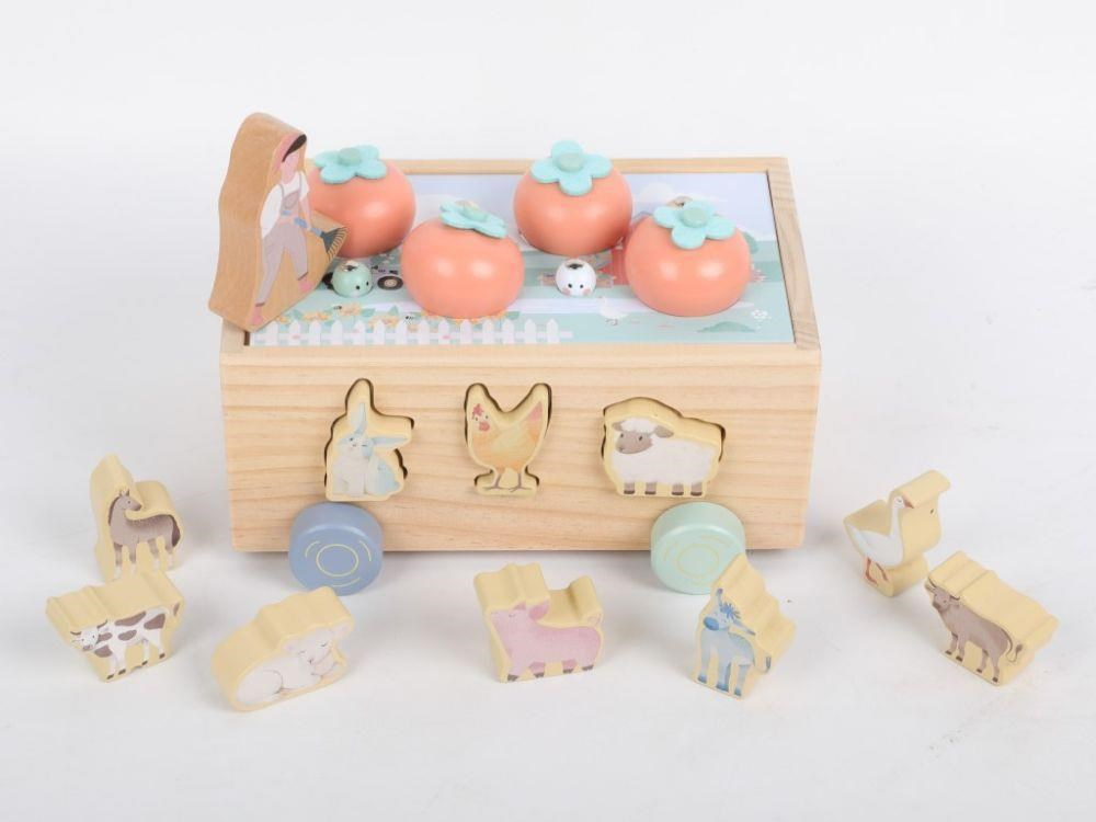 Multifunkční dřevěná pojízdná farma se zvířátky 3v1