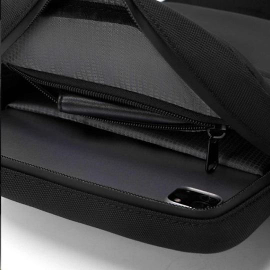 Taška je velmi prakticky členěna. Najdete tu hlavní kapsu s vnitřními přihrádkami, přední kapsu a zadní skrytou kapsu.