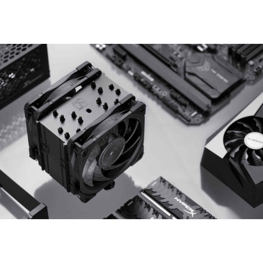 | Obsah balení | Celočerný chladič NH-U12A 2x Ventilátor Noctua NF-A12x25 PWM chromax.black 2x NA-RC14 Adaptér pro snížení hluku (L.N.A.) NT-H1 teplovodivá pasta Černá montážní sada SecuFirm2 Kovový odznáček Noctua na PC skříň |