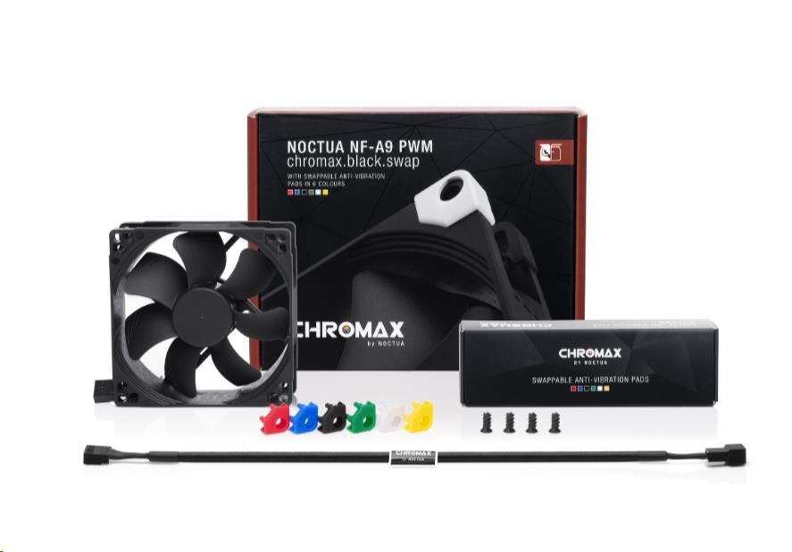 Řada NF-A9 se zasloužila o přední volbu při výběru 92mm větráčků množstvím ocenění a doporučení od technických časopisů a stránek po celém světě. NF-A9 PWM chromax.black.swap kombinuje tichý chod této řady a elegantní celočerný design řady chromax.black. Balení obsahuje také sadu protivibračních podložek pro ty, kteří si rádi svůj stroj barevně sladí. Kvalitu chodu a spokojenost také zaručí SSO2 ložisko, více než 150000 hodin MTTF a 6 let záruky u výrobce.