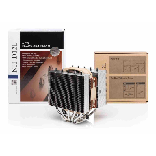 Nízký 120mm chladič CPU Noctua NH-D12L kombinuje výjimečně efektivní chlazení s nezvykle širokou kompatibilitou i s menšími PC skříněmi - teď už nepotřebujete obrovské skříně, abyste uchladili i ty nejvýkonnější stroje. I přes menší konstrukci dokáže NH-D12L chladit efektivněji, než i přední 120mm chladiče, jako například známý model NH-U12S. Při namontování jednoho ventilátoru je díky asymetrické konstrukci 100% kompatibilní s RAM i u patic AMD AM4/AM5 a Intel LGA1200/LGA1700. Perfektní volba pro ty, kteří potřebují špičkový výkon, ale nemají dostatek prostoru pro větší chladič Noctua NH-U12A.
