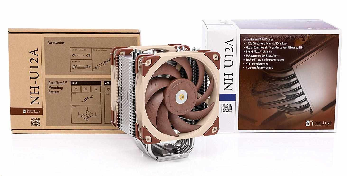 NH-U12A je nejnovější generací tichých, 120mm chladičů prémiové kvality série NH-U12. Kombinací dvou předních větráků NF-A12x25 PWM a kompletně předělaného heatsinku s rozšířeným pokrytím větráků dosahuje nadprůměrných výsledků a dokáže konkurovat i nemálo 140mm chladičům na trhu. V kombinaci s multi-socketovým systémem SecuFirm2™, kvalitní pastou NT-H1 a šestiletou zárukou je NH-U12A samozřejmou volbou s excelentní kompatibilitou a tichostí provozu.