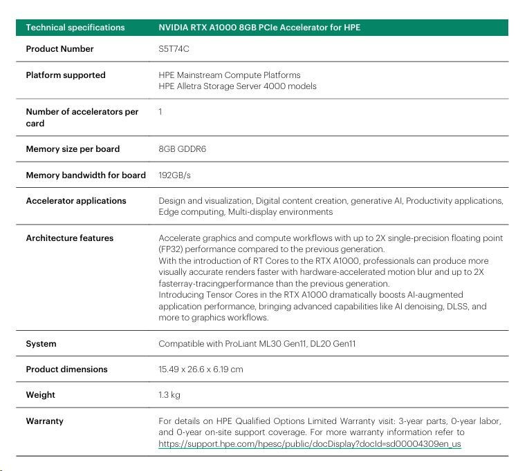 NVIDIA RTX A1000 8GB PCIe Accelerator.