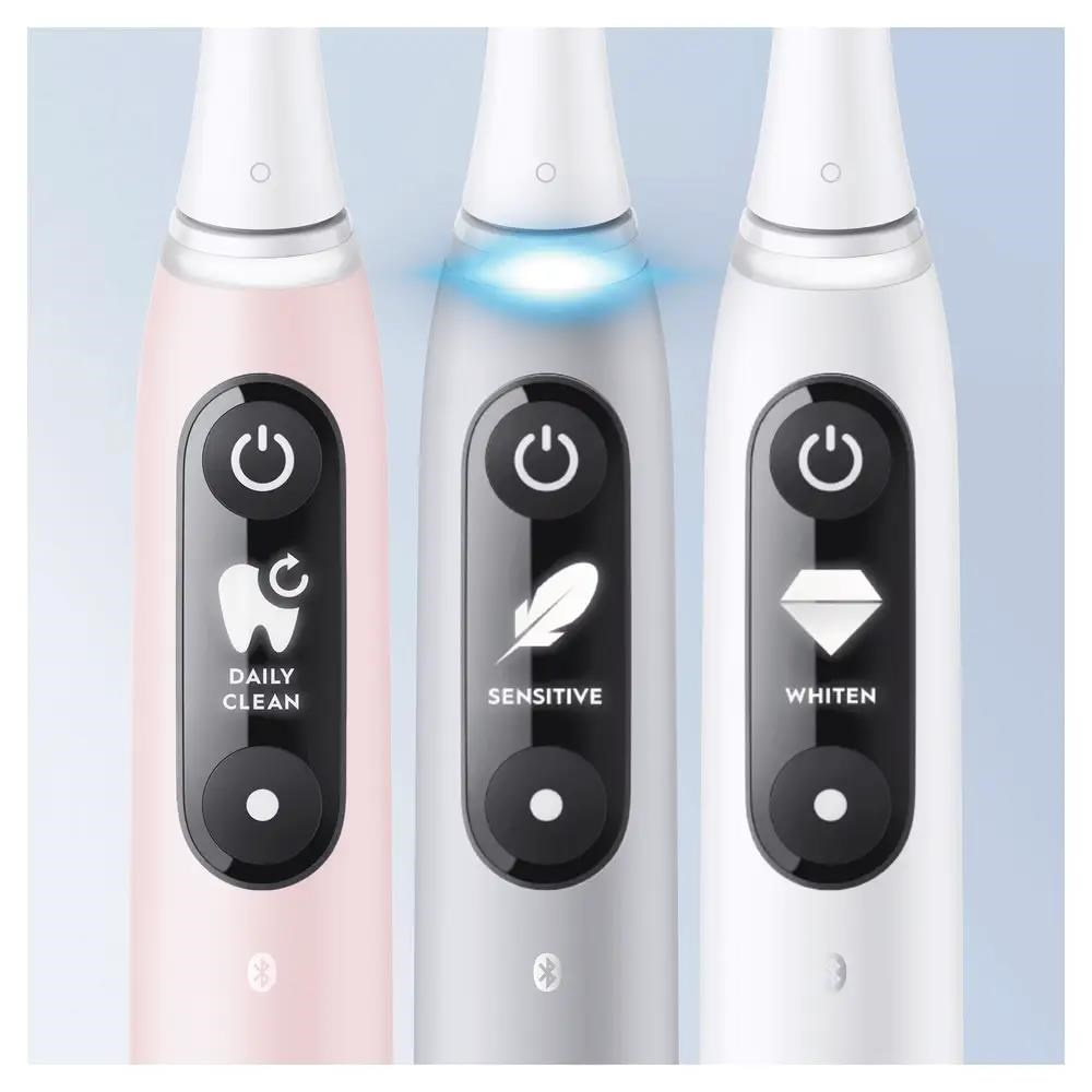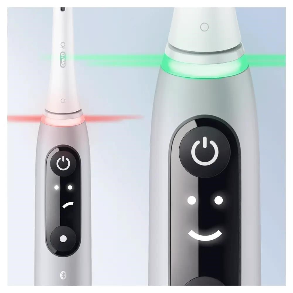 Dosud nejdůkladnější a nejpříjemnější čištění zubů pod značkou Oral-B! Vyzkoušejte pokrokovou technologii a špičkové provedení zubního kartáčku Oral-B iO6 a už nikdy nebudete chtít nic jiného! Inovativní systém magnetického pohonu iO přenáší čisticí energii jemných mikrovibrací na konce vláken, která tak snadno klouzají po zubech a činí čištění účinné a příjemné. Zdokonalený chytrý senzor tlaku chrání dásně a signalizuje, kdy si zuby čistíte správně. Umělá inteligence rozpozná váš styl čištění a navede vás tak, abyste si vyčistili všechny zuby a žádné místo nevynechali.