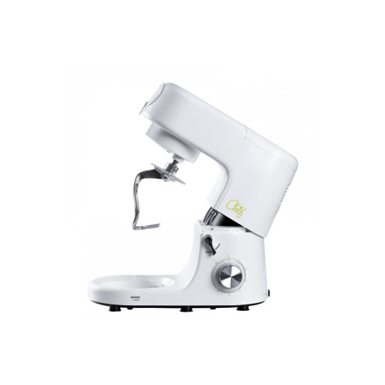 Vysoce kvalitní kuchyňský robot Chef 1 je úžasný pomocník, který za vás odvede těžkou práci při vaření a pečení. Díky němu bude vaše kuchyně ušetřena namáhavé práce při vaření, pečení a míchání. Vypadá jako šéfkuchař – stylová bílá barva s černými a nerezovými akcenty působí jako nezaměnitelný profesionál, který najde své místo v každé kuchyni bez ohledu na styl vybavení, ale jeho silné stránky nejsou jen vzhled, ale také schopnosti. 6 rychlostí a pulzní režim zvládnou vše: v 7litrové nerezové míse uhnětete a vyšleháte perfektní těsto a krémové dorty, kovový mlýnek na maso snadno namele maso na poctivý domácí hamburger. Na třístupňovém struhadle můžete krájet a strouhat zeleninu a ovoce do salátů, ale také do sladkých a slaných dortů. 1,5litrová skleněná mísící mísa je ideální pro přípravu polévek, omáček a zdravých smoothie. S jeho pomocí snadno vykouzlíte sladké cukrovinky. Snadno se rozebírá na menší části, které lze snadno umýt pod tekoucí vodou. Chef je vybaven gumovými přísavkami pro stabilní uchycení na pracovní ploše.