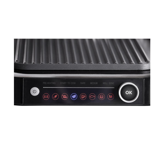 Pro ještě pohodlnější přípravu grilovaných jídel má Grillchef-2 ovládací panel s LED displejem, na kterém si jednoduše navolíte požadovaný režim grilování. Na výběr máte se 6 programů včetně funkce Defrost a manuálního režimu (M).