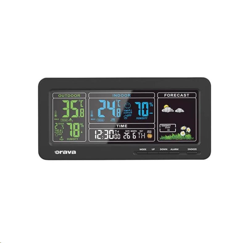 Meteostanice Orava Meteo-1 vás spolehlivě informuje o tom, jaká teplota je v interiéru i za okny vašeho domova. Na přehledem LCD displeji si kromě teploty a vlhkosti přečtete informace o čase, datu a předpovědi počasí.