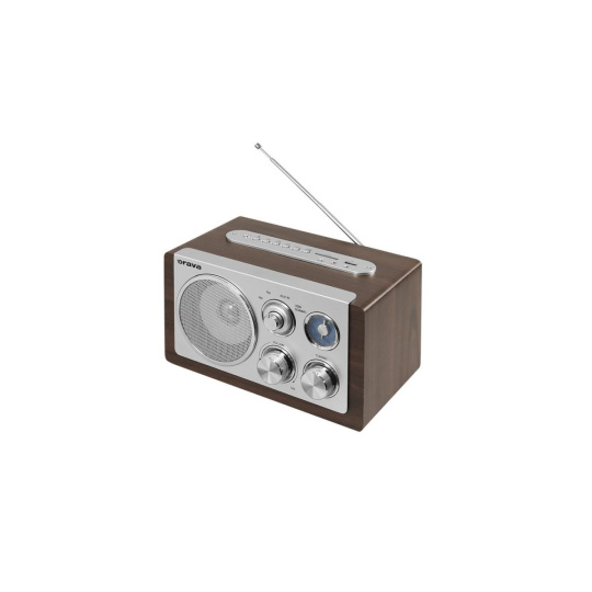 Orava RR-29 A rádio, 1 x 3,5W, AM / FM rádio, USB, AUX vstup, SD karta, hnědá / stříbrná