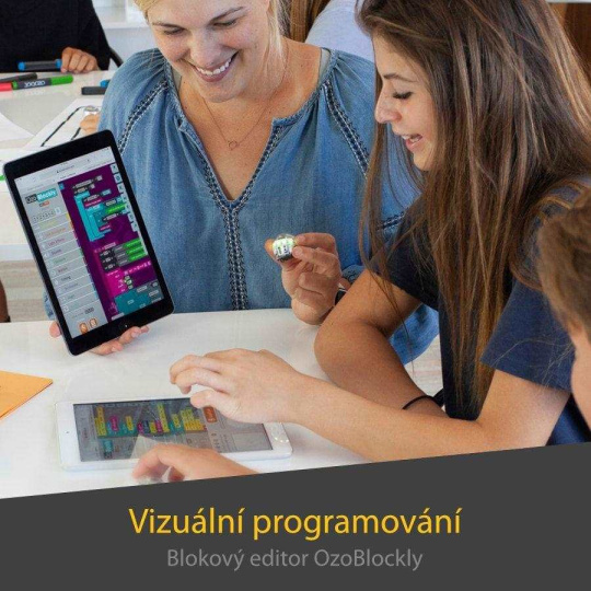 Chcete srandovního robota na ovládání, co se vejde do kapsy? Rádi byste přitáhli děti k informatice? Baví vás nové technologie a chcete si vyzkoušet programování? Začněte s Ozobot Evo, ten zvládne klidně všechno najednou a ještě víc. Jde o promyšlenou výukovou pomůcku, vhodnou pro zájmové i školní vzdělávání napříč předměty i stupni. Malý bot je nadupaný funkcemi, diodami, reproduktory a senzory, přesto jeho baterie vydrží celou vyučovací hodinu. Umí sledovat vodicí čáry a vykonat zakódované příkazy nakreslené na papíře, nebo provede všechno podle jednoduše vytvořeného skriptu, který sami naprogramujete v intuitivním editoru Ozobot Blockly či pokročilejším Ozobot Editoru. Zní to složitě? Vůbec z toho nemusíte mít strach. Ovládání je snadné a s přehledem ho zvládnou už 8leté děti a dospělí, kteří se drobné elektronice raději vyhýbají. A na ty vůbec nejlehčí úkoly si troufají i předškoláci! Už od nejnižšího věku tak můžete rozvíjet jejich kreativitu, kritické myšlení, schopnosti pracovat v týmu, kódovat a řešit problémy.