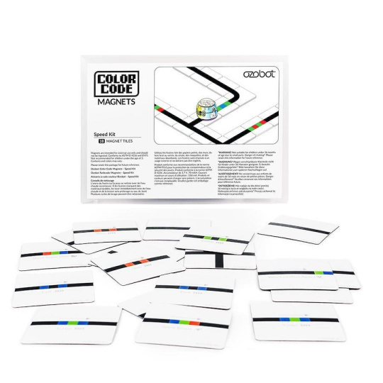 Rozšiřující magnetická sada Ozobot je kombinací barevných kódů Ozobot a dílků pro následování trasy pomocí černé linie. Umožňuje žákům rozvíjet zkušenosti v širokém spektru dovedností. Magnety s barevnými kódy a liniemi mají vhodnou velikost a snadno se používají. Manipuluje se s nimi jednoduše díky praktickým rozměrům a jsou ideální pro mladé žáky, kteří právě začínají objevovat svět interaktivního kódování.