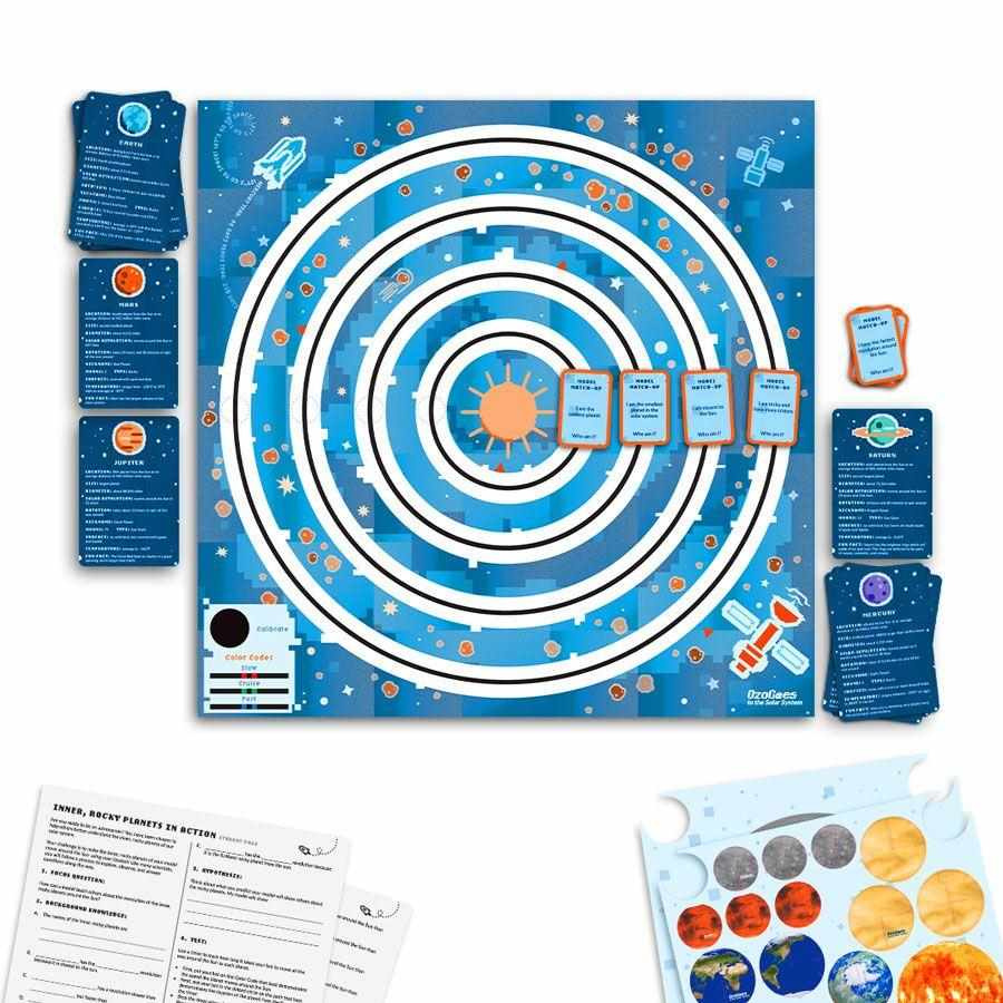 Učit se o vesmíru jen čtením učebnice by byla obrovská škoda. Podpořte zvídavost mladších žáků sadou OzoGoes to the Solar System, která je do problematiky zaručeně vtáhne. Společně sestaví makety planet, umístí je na pracovní desku a přiřadí k nim kartičky s odpovídajícími vlastnostmi. Čtyři Slunci nejbližší planety mohou být uvedeny do pohybu s pomocí malých robotů Ozobot. Následným pozorováním modelu sluneční soustavy děti získají odpovědi do přiložených pracovních listů, upevní si získané vědomosti, ale také rozvíjí kritické myšlení.Zpestřete výuku množstvím zábavných aktivit