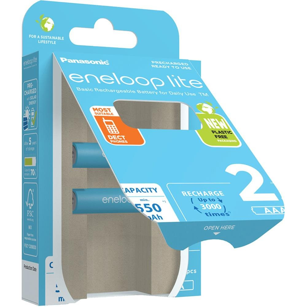 Baterie Eneloop lite jsou kompatibilní se všemi vašimi zařízeními napájenými z baterií a lze je nabíjet pomocí standardní nabíječky Ni-MH Kapacita: min. 550 mAh, 3000 nabíjecích cyklů.